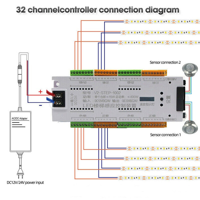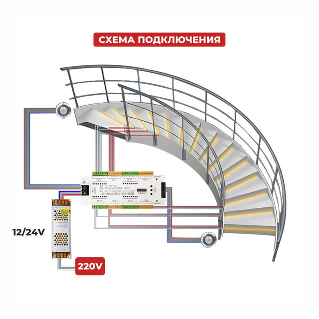 Вмикач-контролер освітлення драбини V2-step-1002 DC 12-24V 400W на 32 щаблі